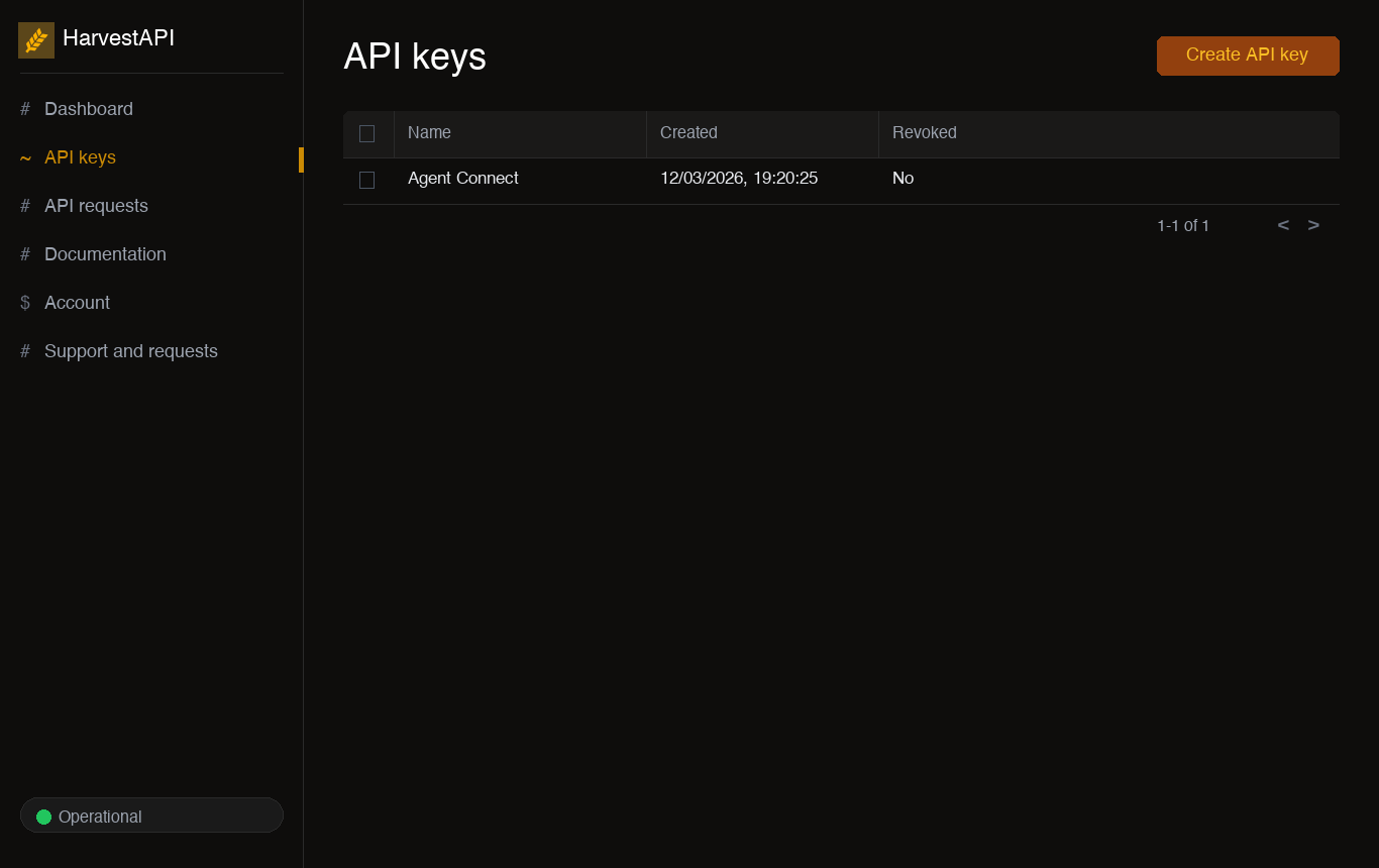 • Sign in to your HarvestAPI dashboard.